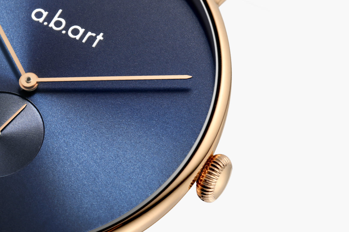 Inspired by the enchanting deep blue sky of the Swiss Alps, the designer created this simple and elegant deep blue watch, naming it "Alpine Blue"