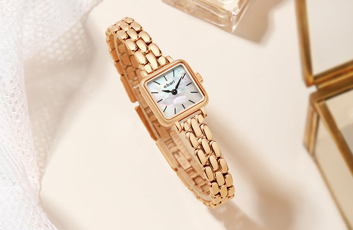 This watch features a unique rounded square dial design that not only breaks the boundaries of traditional round dials but also incorporates softened edges, making the entire dial appear more refined and elegant. The elegant white mother-of-pearl face is seamlessly complemented by black hands and markers, offering a sophisticated vintage look. This design is suitable for both formal business settings and casual daily wear, embodying a versatile design philosophy.