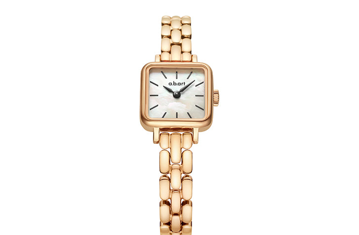 Unveil sophistication with our exquisite timepiece, flaunting an 18mm square case and a luminous mother-of-pearl dial enhanced by a sapphire crystal mirror. Encased in lavish rose gold and paired with a matching bracelet, this watch exudes timeless elegance and luxury. Elevate your ensemble with this captivating accessory, seamlessly blending classic allure with contemporary glamour.
