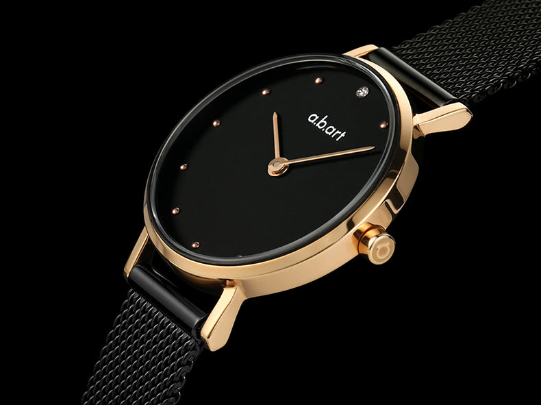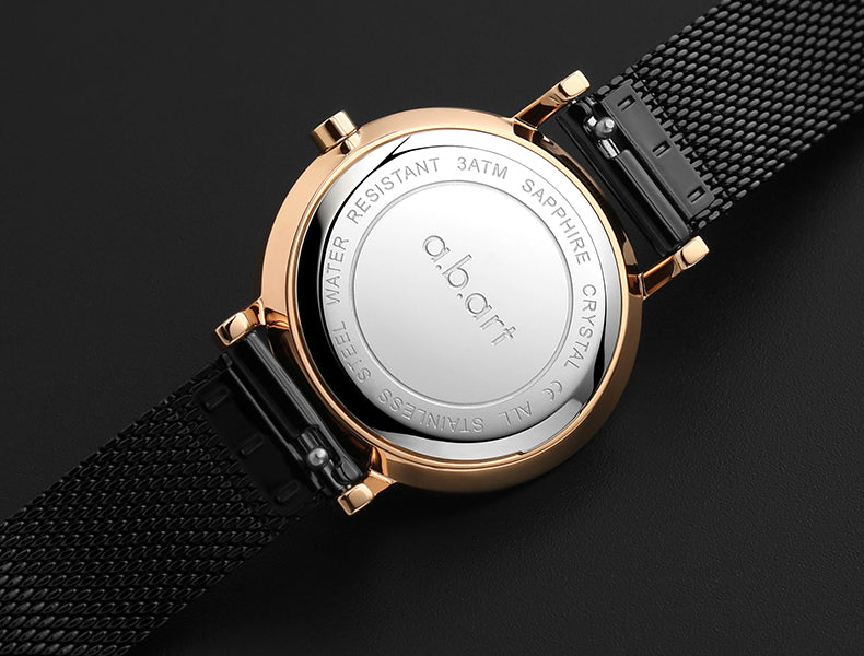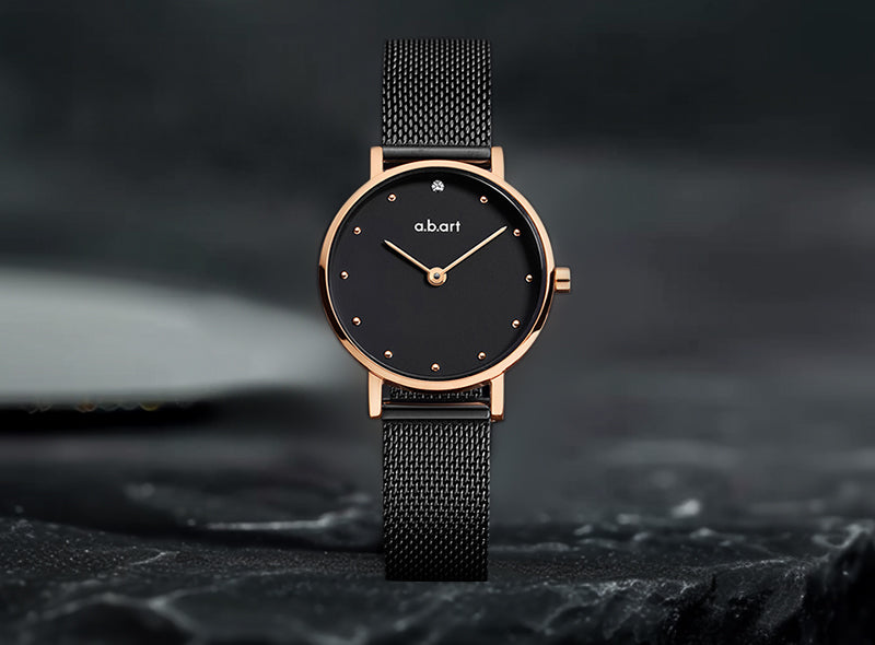 Black symbolizes depth and mystery, representing the endless flow and profoundness of time. Rose gold signifies warmth and preciousness. Embracing simplicity, the design adopts a minimalist style, retaining only essential dot markers to appreciate the beauty of fleeting moments in the passage of time.