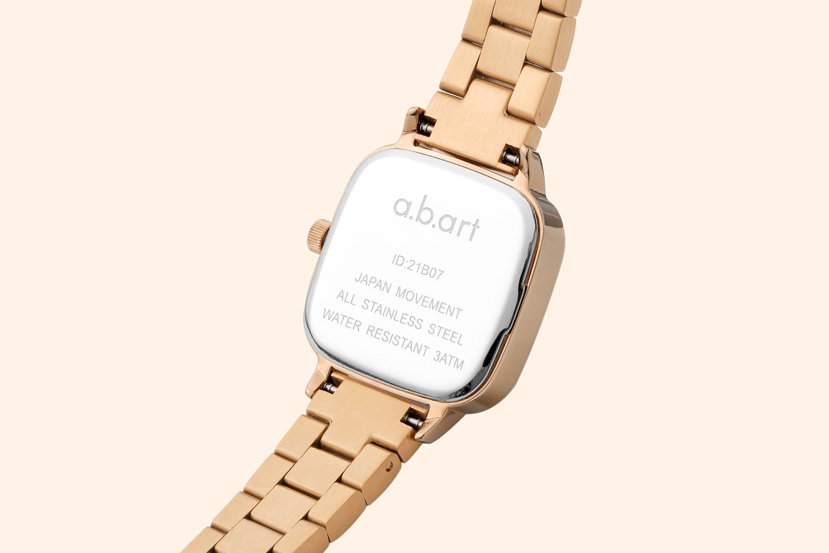 The watch is crafted from top-tier 316L stainless steel in rose gold, which undergoes multiple stages of grinding and polishing. It boasts exceptional corrosion resistance and wear resistance, not only shining brightly but also displaying the unique cool texture of the metal that sparkles with changes in light, maintaining a like-new radiance at all times. This ensures that every touch is a silky smooth experience.