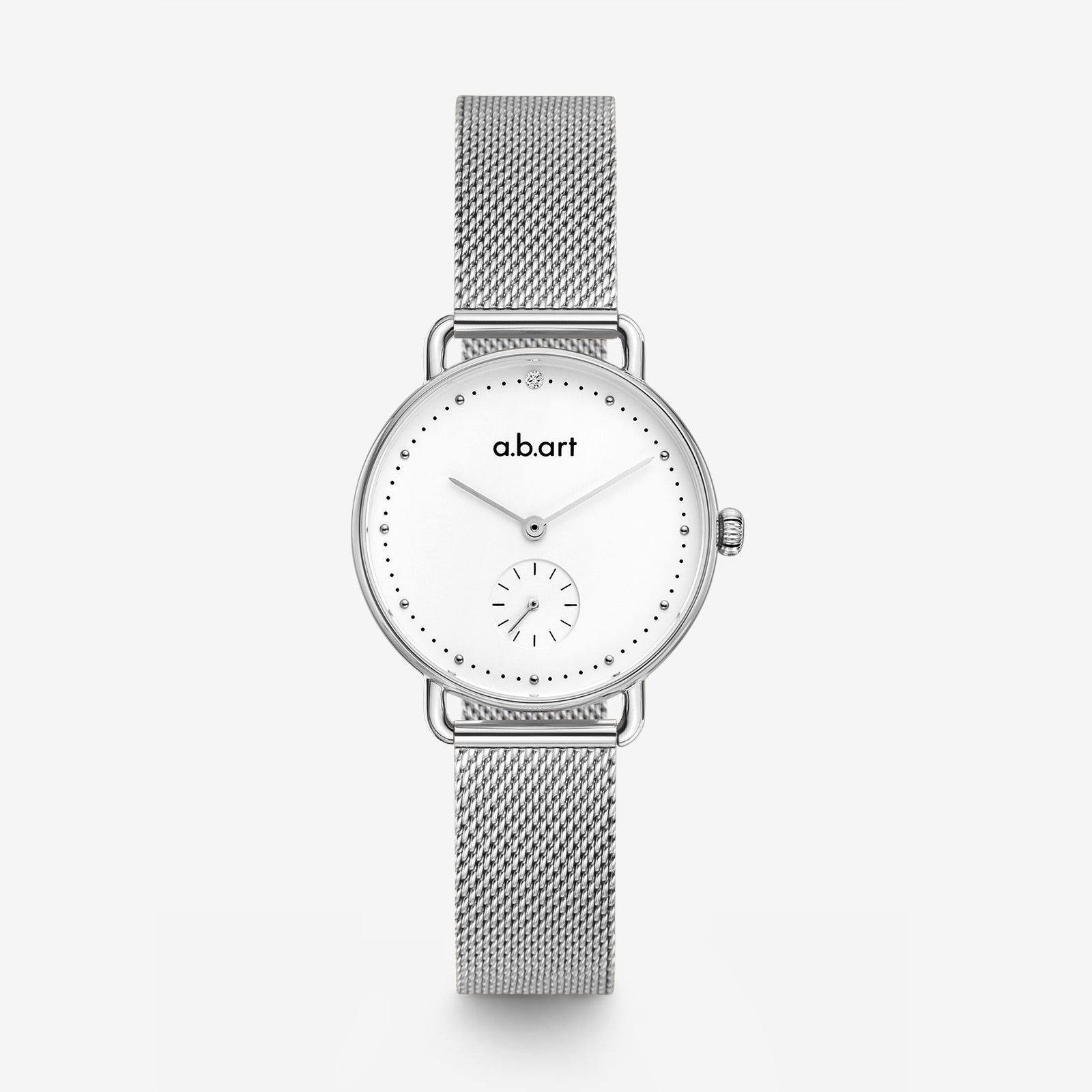 With simplicity and elegance as its design philosophy, this a.b.art watch perfectly embodies the exquisite craftsmanship of Swiss watchmaking and modern design aesthetics. The combination of a silver mesh strap and a pure white dial creates a clean and sophisticated visual effect, making it ideal for users who seek simplicity and style.