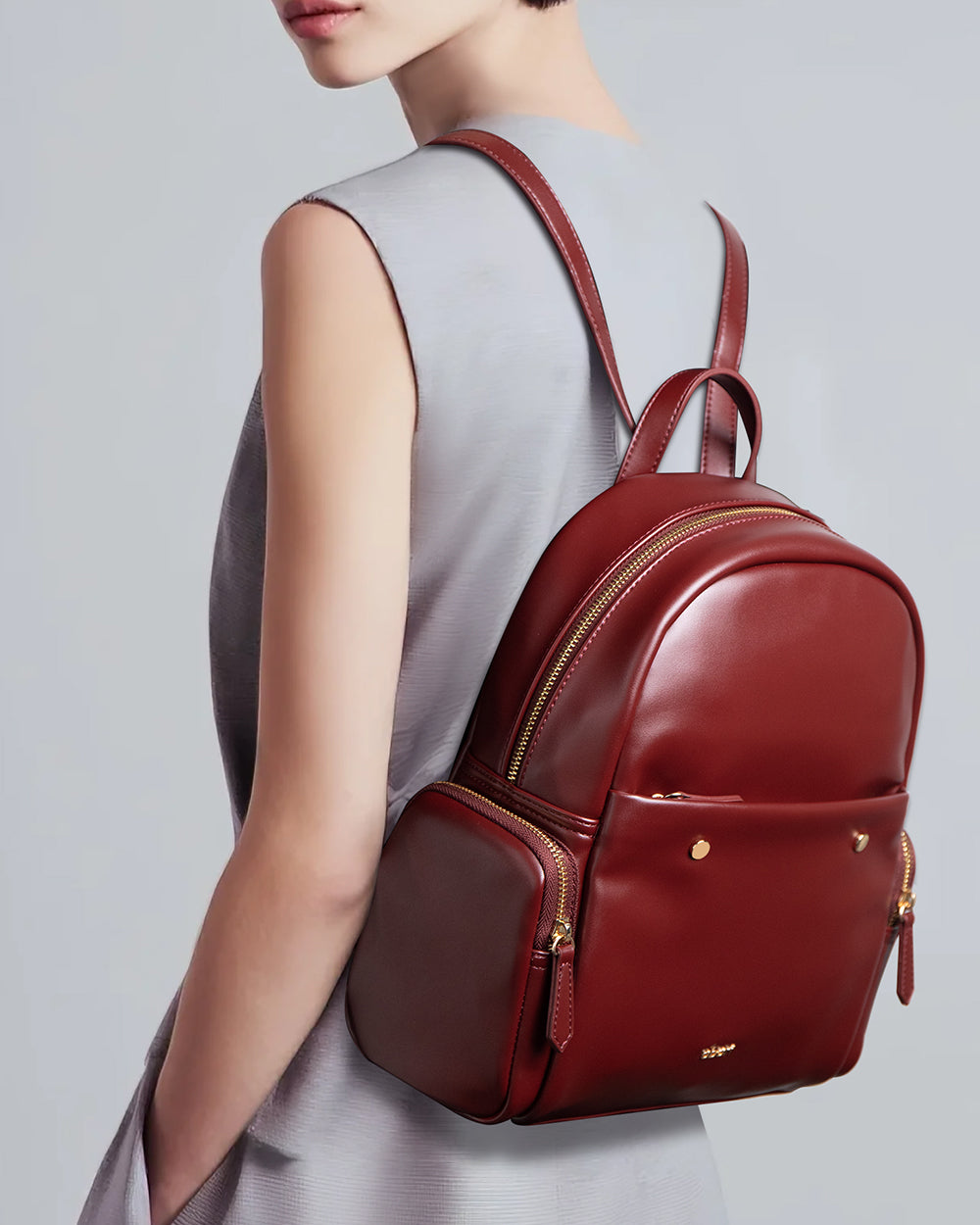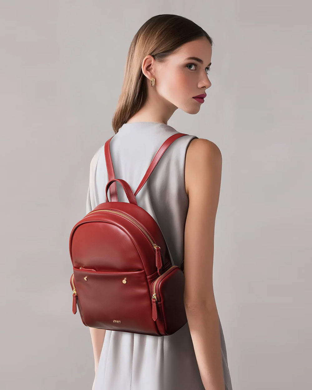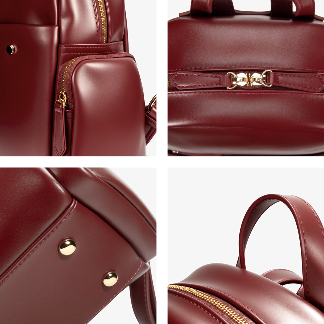 In a standout shade of deep wine red, this leather backpack is a statement-maker with smarts. Switch it from shoulder to hand to back—your style, your rules. With roomy compartments, sleek zippers, and a polished metal buckle, it’s ready for anything, just like you.